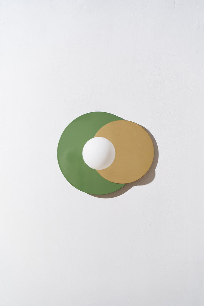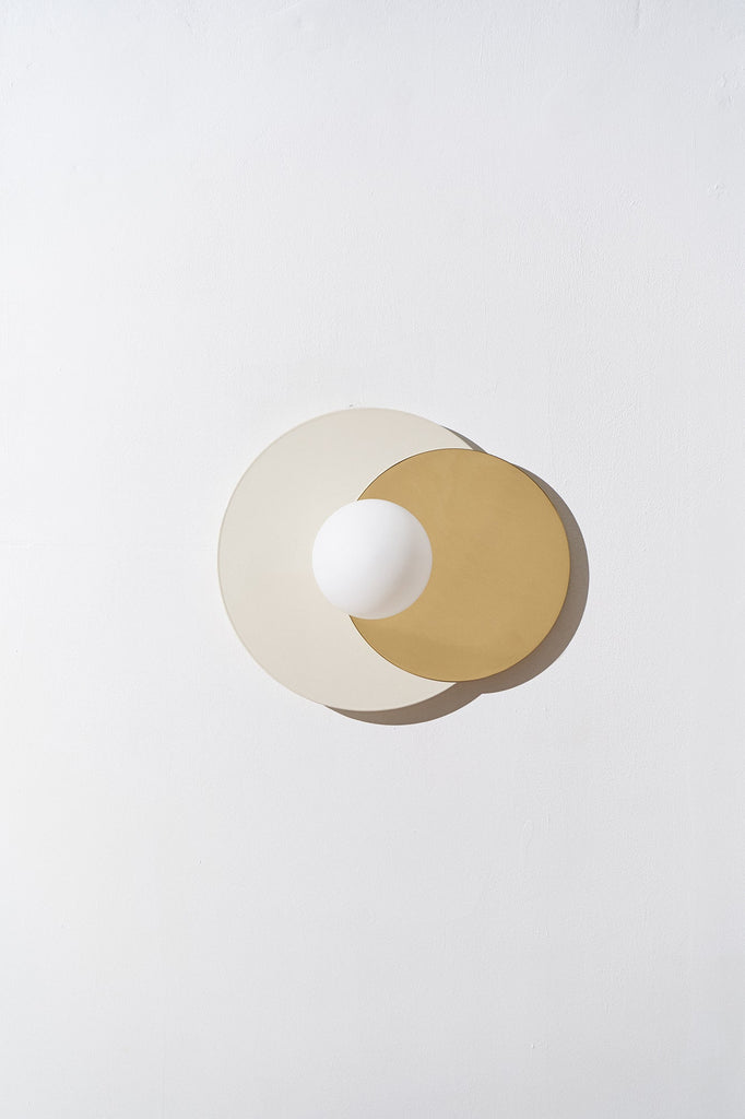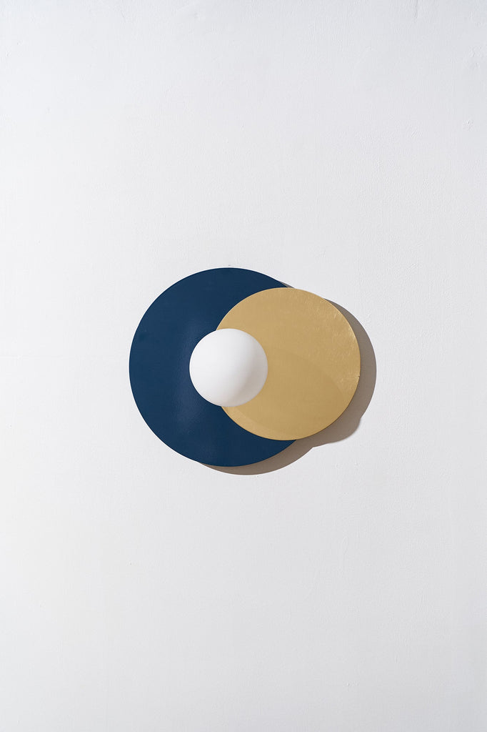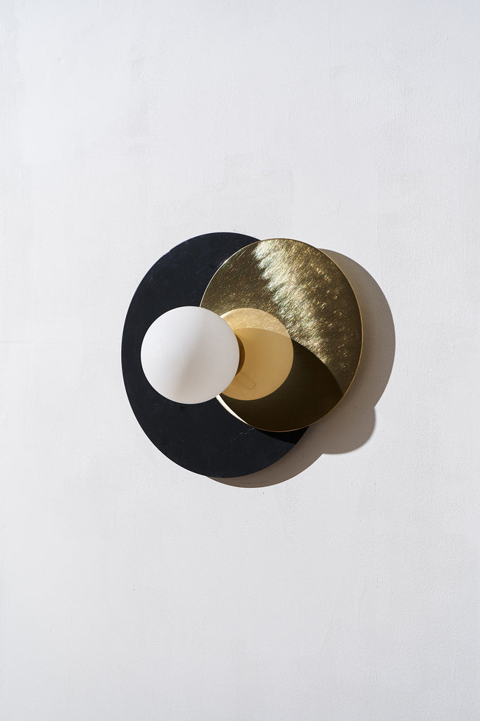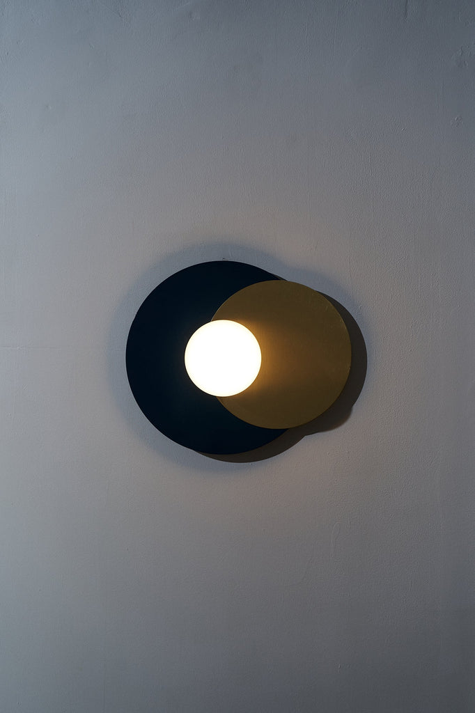 Utilizamos la combinación de chapas de hierro lacado y chapas de latón con bola de cristal. El latón en bruto envejece y coge tono con el tiempo. Se puede limpiar para embellecerlo con un limpiador de metales.