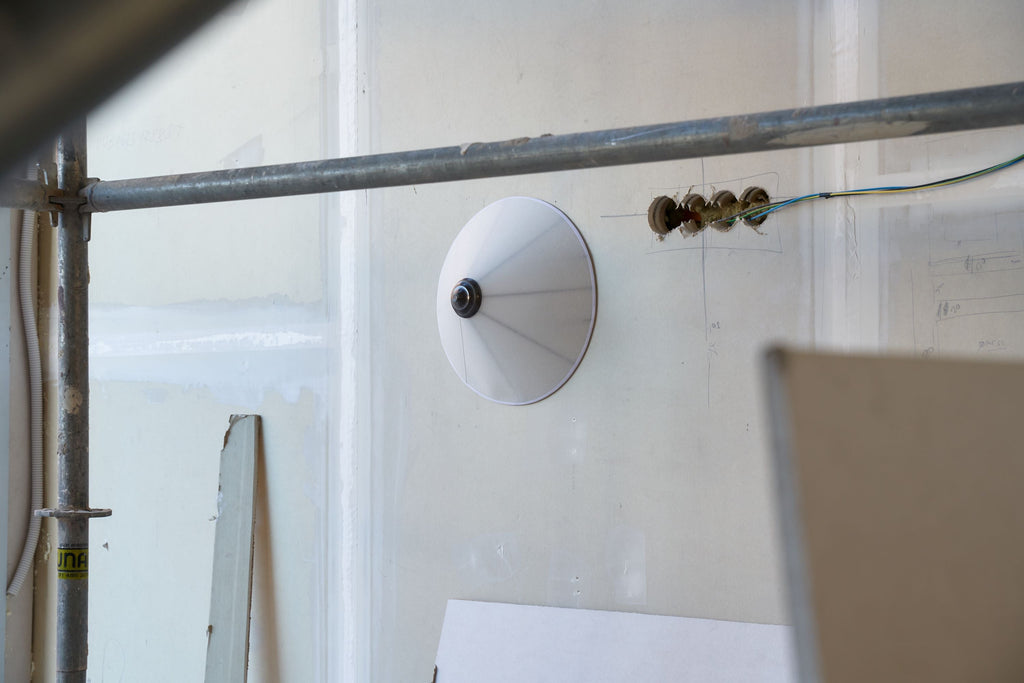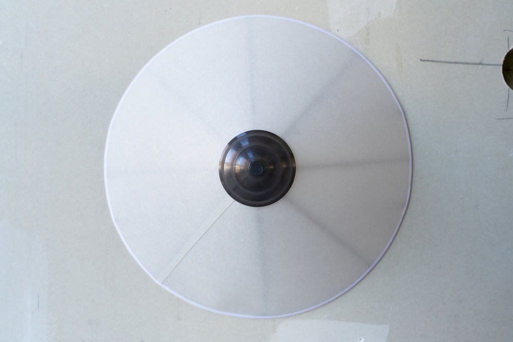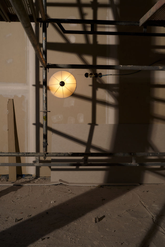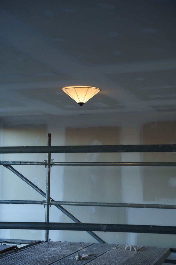 GOA está fabricada en papiro y al encenderse resalta la estructura de hierro y bronce que la sostiene. Diseñada tanto para techo como pared, esto multiplica sus prestaciones y la convierte en una pieza única.