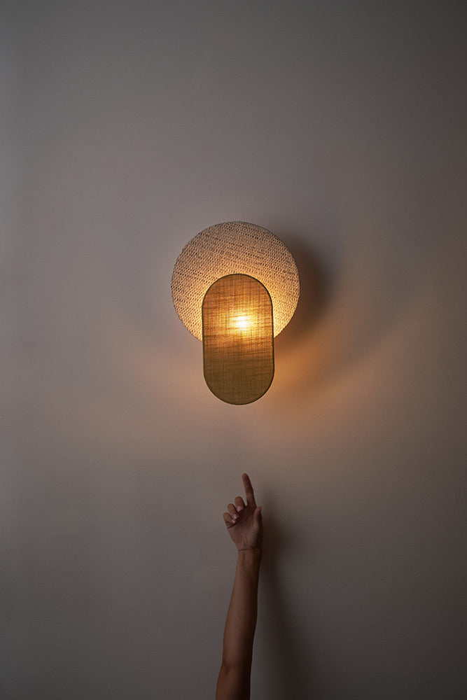 Utilizamos la combinación de lino, papel texturado y tela boucle junto con el latón. El latón es un material que envejece con el tiempo. Para embellecerlo, se recomienda utilizar un limpiador de metales.