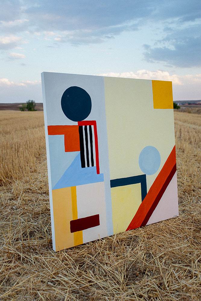 Colección “Prisma”. Arista: Lourdes Sendagorta. La obra se caracterizada por su frescura. Plasma la esencia del color y de las formas geométricas y la intersección entre ellas. Colores vivos que se funden entre pasteles hacen de esta composición una gama cromática muy especial y con carácter. Una obra realizada con la técnica del acrílico.