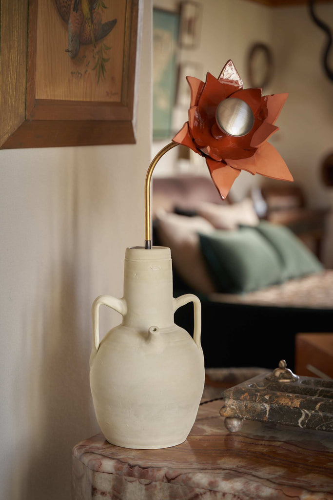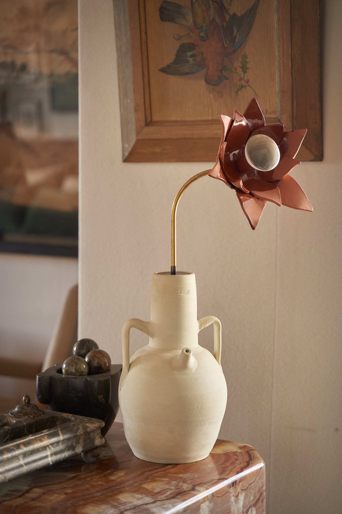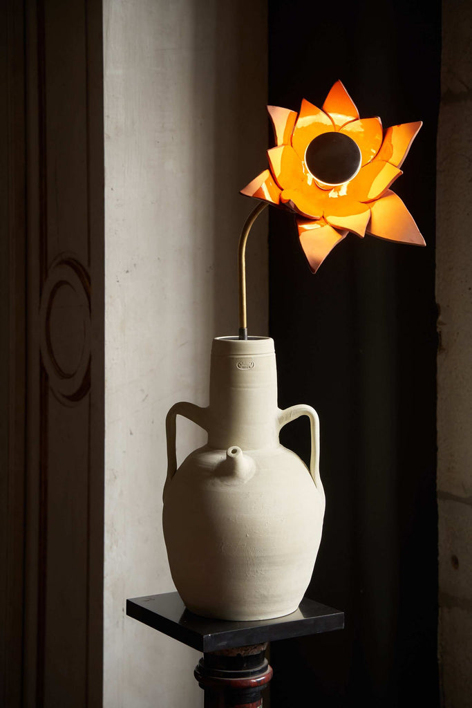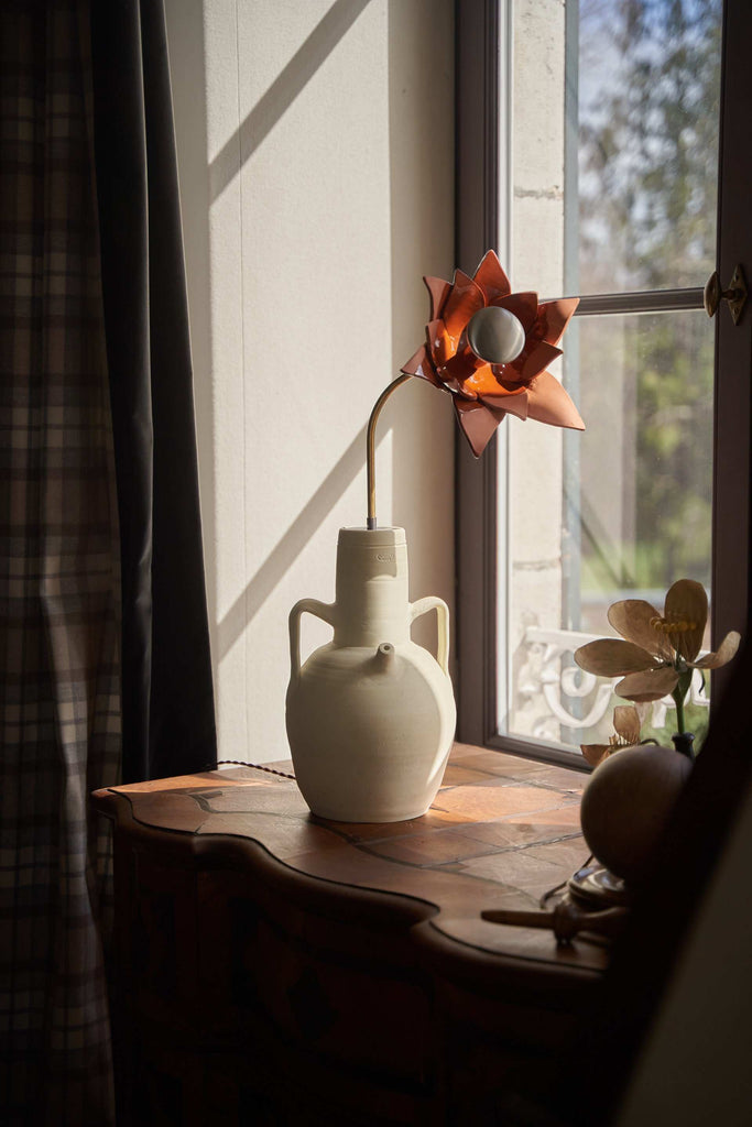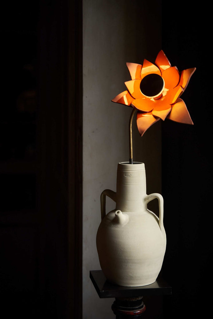 Junto con la flor Clematis brunnea forma esta pieza singular de la que no brota agua sino luz. Es única e irrepetible, tiene marcas de las manos que lo modelaron y es un canto a la tradición de nuestra cultura alfarera.
