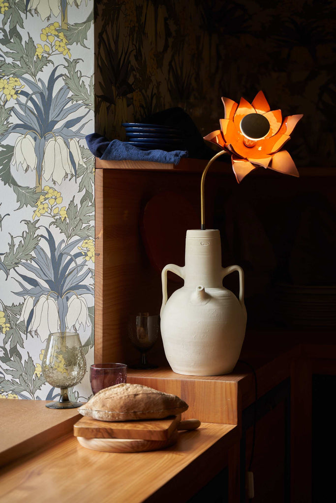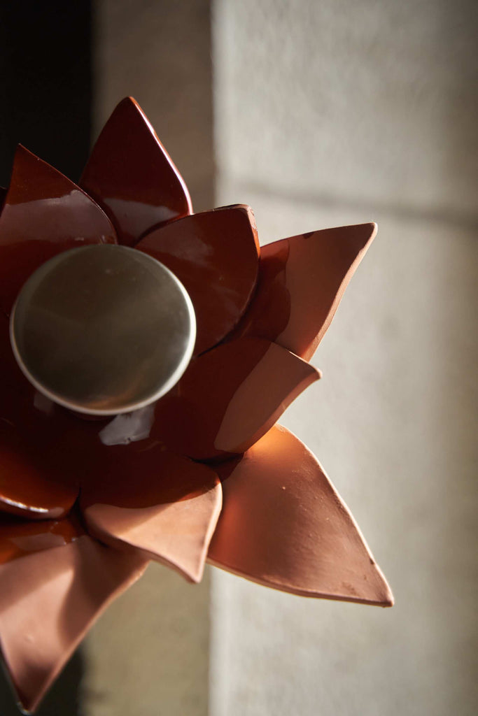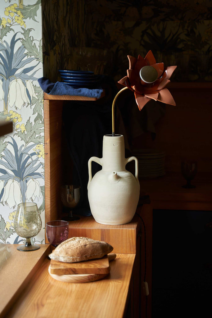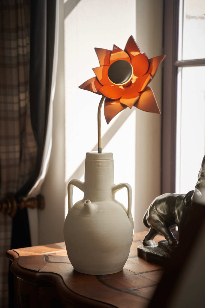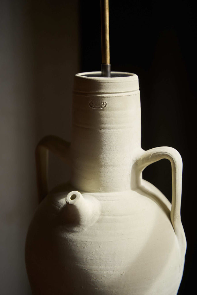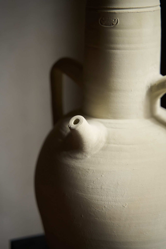 Junto con la flor Clematis brunnea forma esta pieza singular de la que no brota agua sino luz. Es única e irrepetible, tiene marcas de las manos que lo modelaron y es un canto a la tradición de nuestra cultura alfarera.