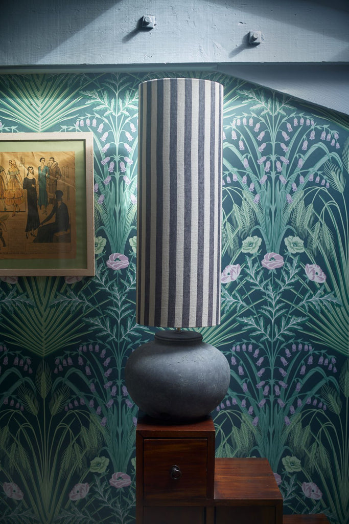 Lámparas con bases redondas artesanales fabricadas en cerámica y que contrastan con unas pantallas cilíndricas de lino 100% con un diseño de rayas que nos recuerdan a las famosas “casetas” de la Grande Plage.