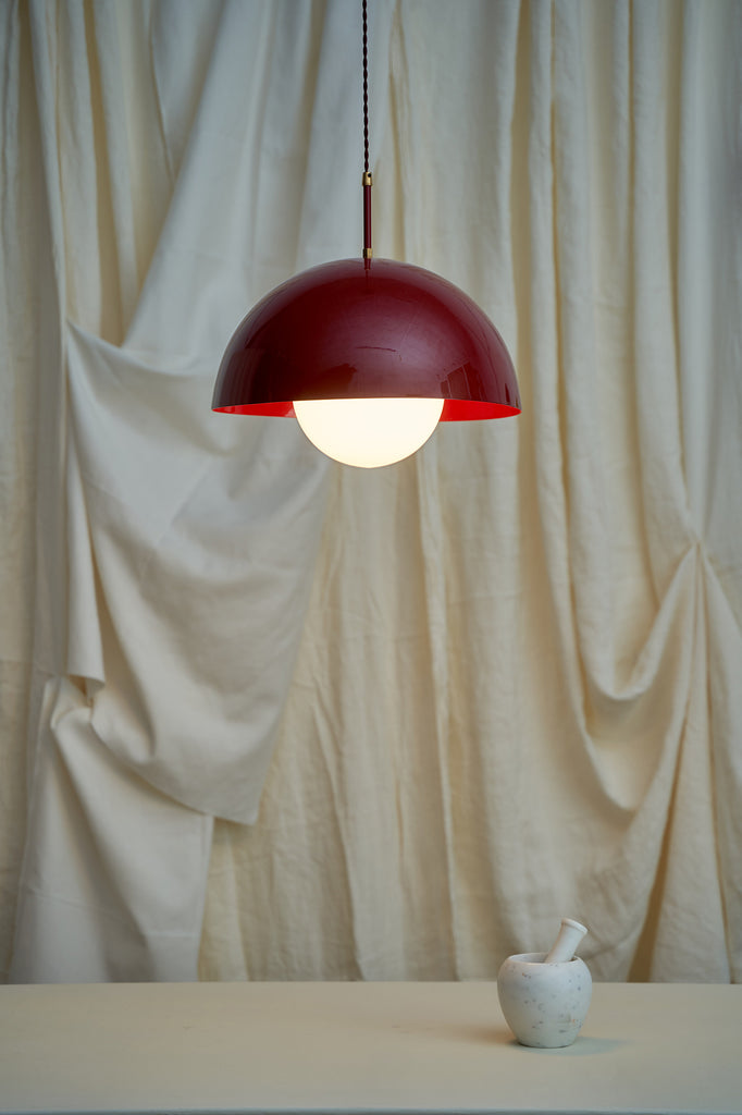 Un toque de color protagonista. En esta pieza una bola asoma y genera el perfecto contraste con la chapa de hierro lacada. Perfecta para conseguir una luz de ambiente. Lámpara de techo inspirado en los sabores y colores vibrantes de las especias de la India. ¿A qué saben los colores? A Pimentón, cacao, sésamo y sal, remolacha, cúrcuma y azúcar de caña.