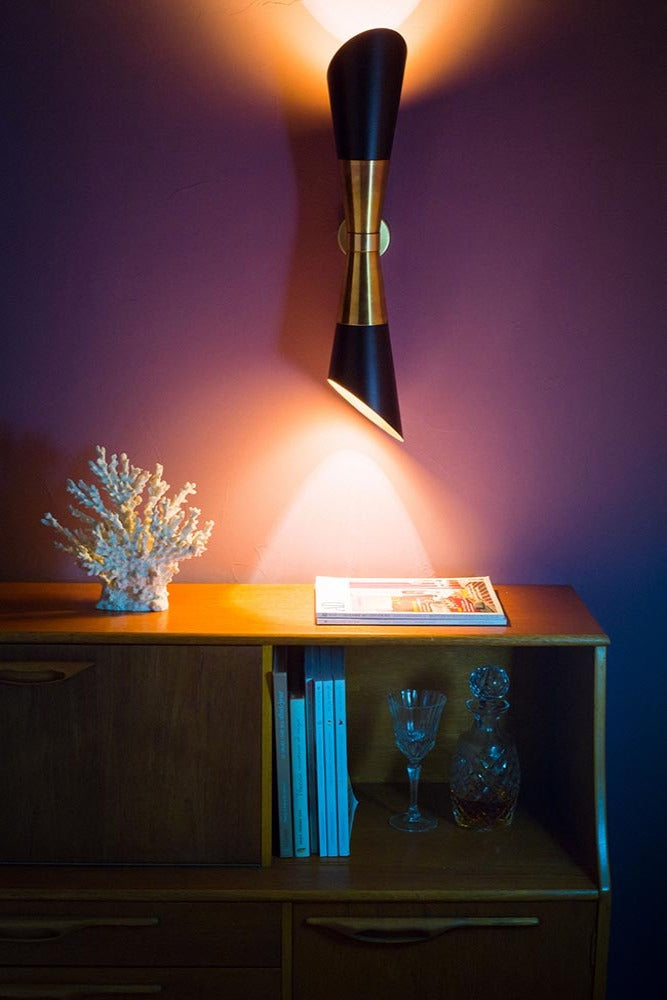 Lámpara aplique inspirado en el estilo de los años 50 con un diseño renovado y aire contemporáneo.