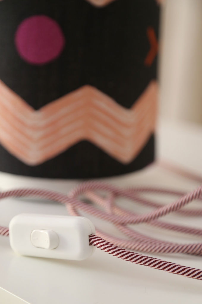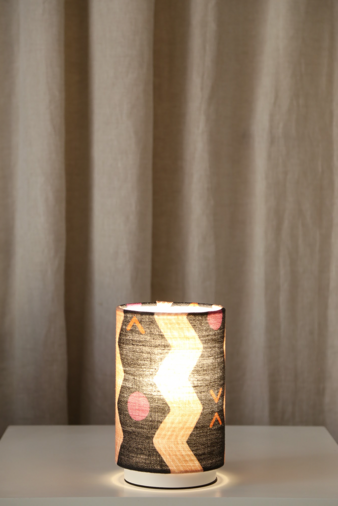 Lámpara de mesa Zas da una luz de ambiente. Nos encanta como pieza decorativa para una estantería. Nos gusta por su forma y colores de día y por su luz cálida de noche.