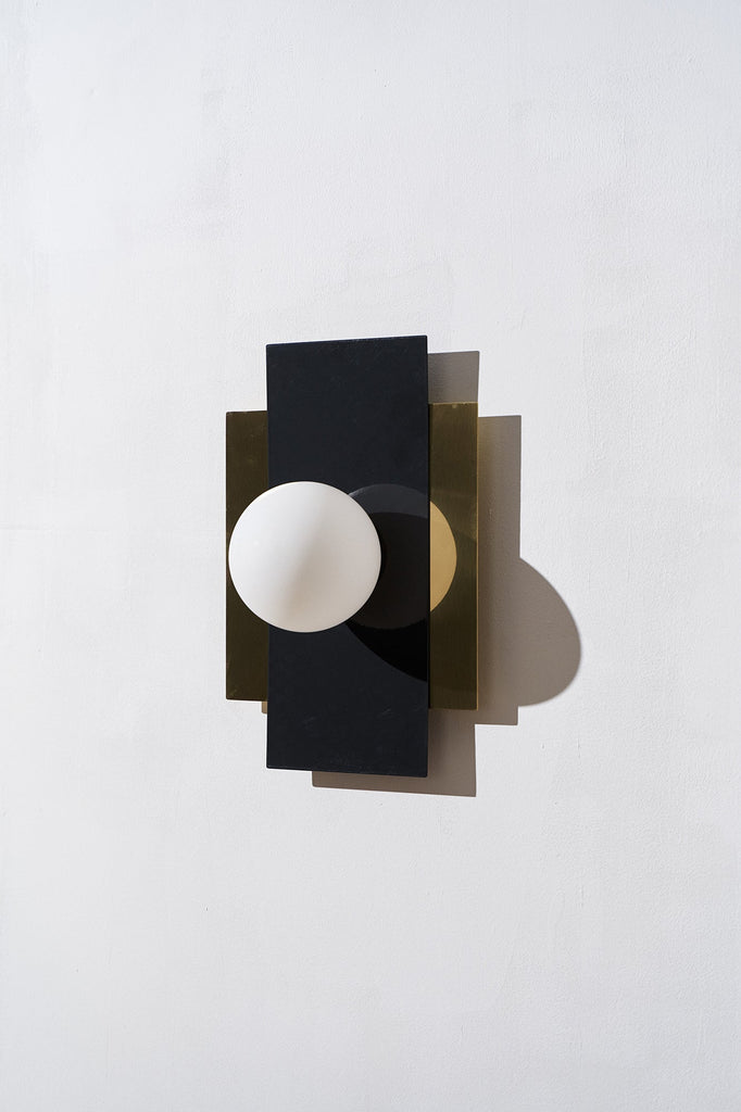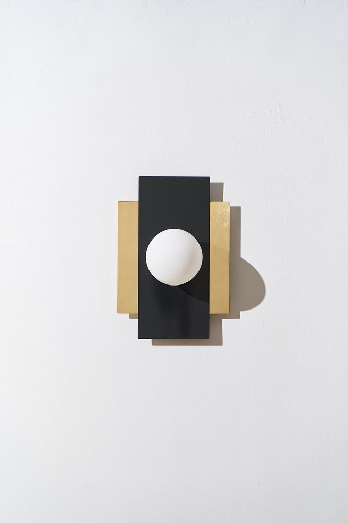 Utilizamos la combinación de chapas de hierro lacado y chapas de latón con bola de cristal. El latón en bruto envejece y coge tono con el tiempo. Se puede limpiar para embellecerlo con un limpiador de metales.